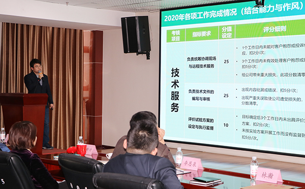 會上,公司35位中高層經營管理干部對自己一年來的履職情況和重點工作做了系統(tǒng)總結,對工作中存在的問題和不足展開了深刻剖析,并對2021年度工作思路和重點工作科學規(guī)劃。臺下人員認真聆聽,并依據考核方案,對述職干部客觀公正地打分評價。