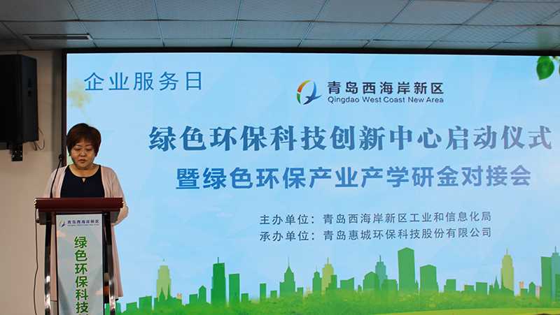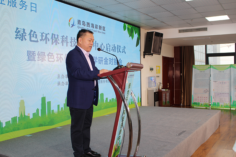青島西海岸新區(qū)工信局副局長張青宣讀《關(guān)于青島西海岸新區(qū)綠色環(huán)??萍紕?chuàng)新中心的批復(fù)》