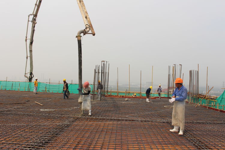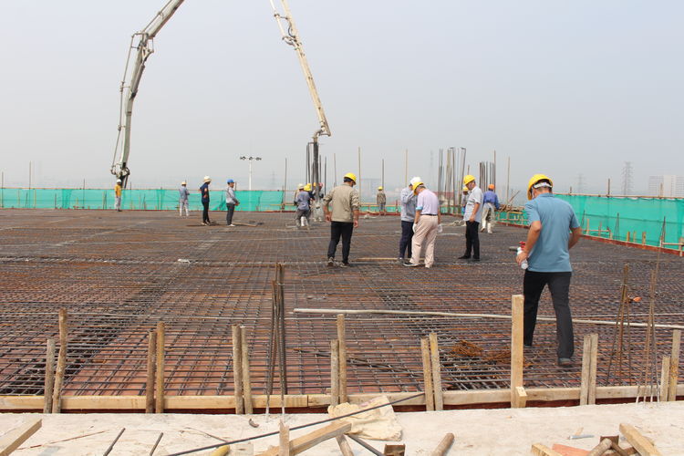 在施工單位的帶領(lǐng)下,公司領(lǐng)導(dǎo)來(lái)到分子篩廠房頂層參觀建設(shè)情況。分子篩廠房建筑面積22308㎡,是整個(gè)項(xiàng)目中面積最大、工程量最大、施工難度最大,設(shè)計(jì)、工藝最復(fù)雜的建筑單體。在臺(tái)風(fēng)、高溫極端天氣及交叉作業(yè)、疫情等諸多不利因素影響下,為加快推進(jìn)建設(shè)進(jìn)程,項(xiàng)目建設(shè)指揮部全體成員放棄節(jié)假日休息,以“5+2”、“白+黑”的戰(zhàn)斗精神,全部深入一線進(jìn)行質(zhì)量檢查和安全督導(dǎo),他們迎難而上、披荊斬棘,是惠城精神的真實(shí)寫照;施工單位增加人員、機(jī)械設(shè)備,安排工人三班倒作業(yè),保證施工現(xiàn)場(chǎng)24小時(shí)不停工;監(jiān)理、勘察、造價(jià)等參建單位加班加點(diǎn),“隨叫隨到,不叫也到”......各方精誠(chéng)合作,共同推進(jìn),終于迎來(lái)了8月10日這一封頂時(shí)刻。