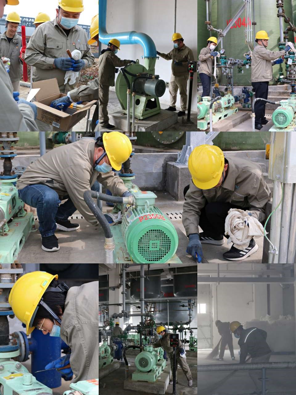 黨總支領(lǐng)導(dǎo)強調(diào)完本次活動需要注意的安全事項和打掃標(biāo)準(zhǔn)后,全體黨員兵分三路按照之前的分工,紛紛拿起抹布、鐵鏟、掃帚、毛刷,奔向清掃現(xiàn)場。車間設(shè)備旁、罐區(qū)中央都能看到黨員同志們的身影,大家發(fā)揚不怕臟、不怕苦,不怕累的精神,不放過一個衛(wèi)生死角。經(jīng)過兩個半小時的分工協(xié)作,廠區(qū)衛(wèi)生得到很大改善。