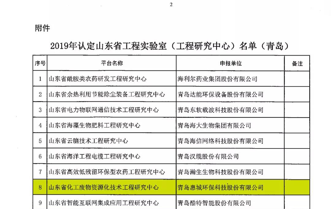 日前,根據(jù)山東省發(fā)展和改革委《關(guān)于公布2019年認(rèn)定山東省工程實(shí)驗(yàn)室(工程研究中心)名單的通知》(魯發(fā)改高技〔2019〕360號)發(fā)布文件,我公司申報(bào)的省級工程研究中心獲批并被認(rèn)定為山東省化工廢物資源化技術(shù)工程研究中心。[ 查看更多 ]